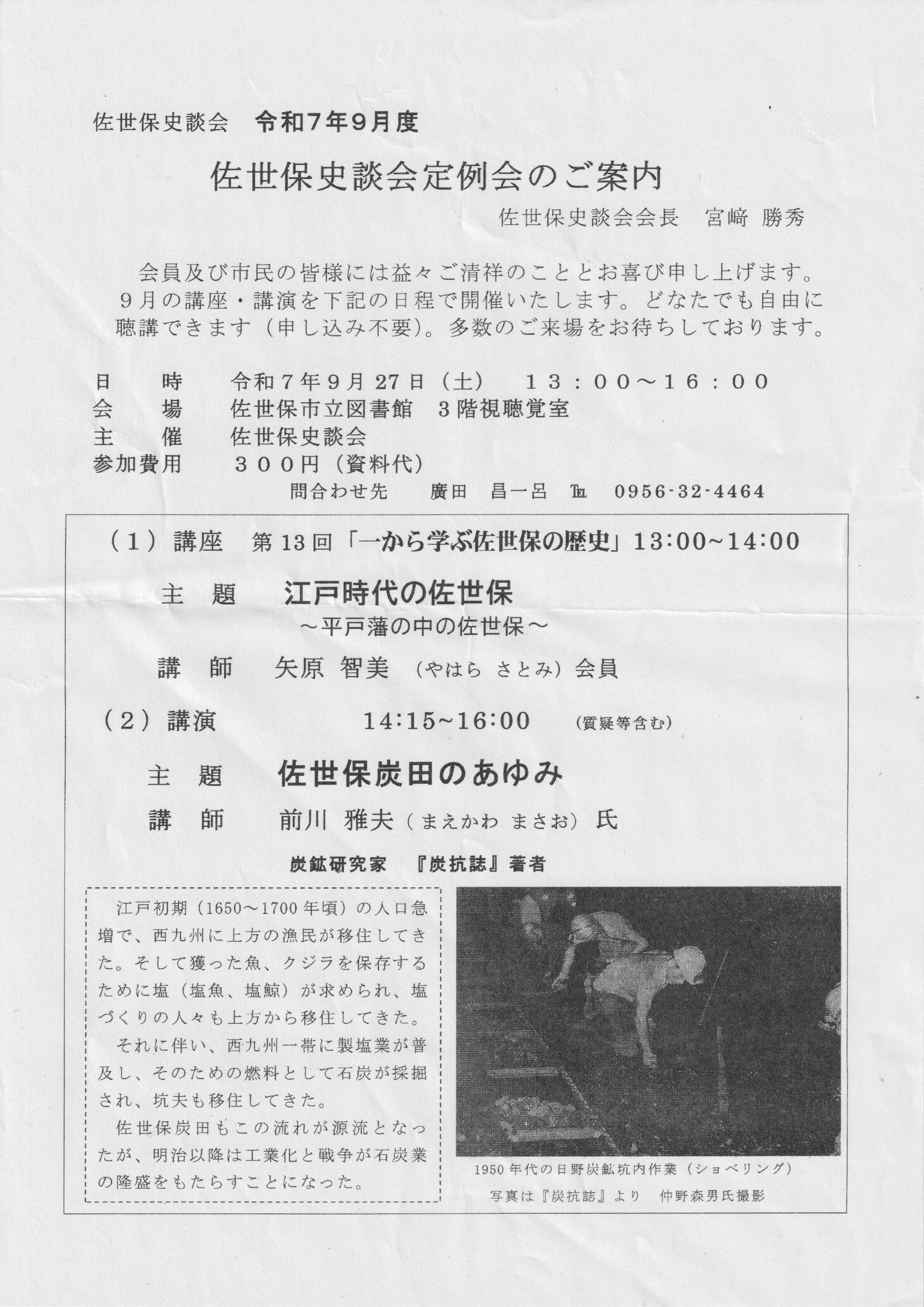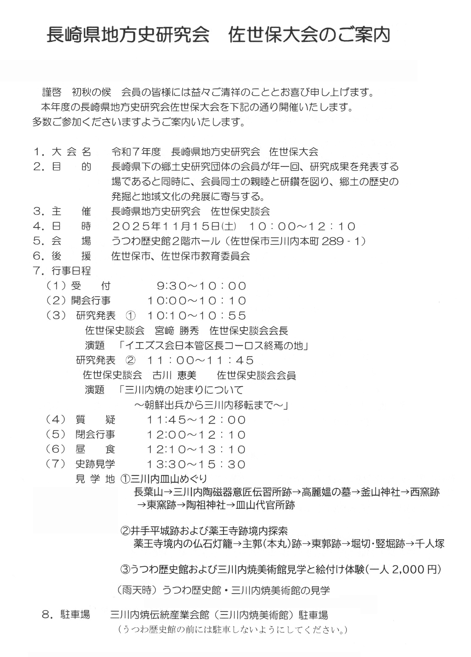 A令和7年度佐世保史談会総会(14:15〜15:30)のため定例研究発表会は中止です。