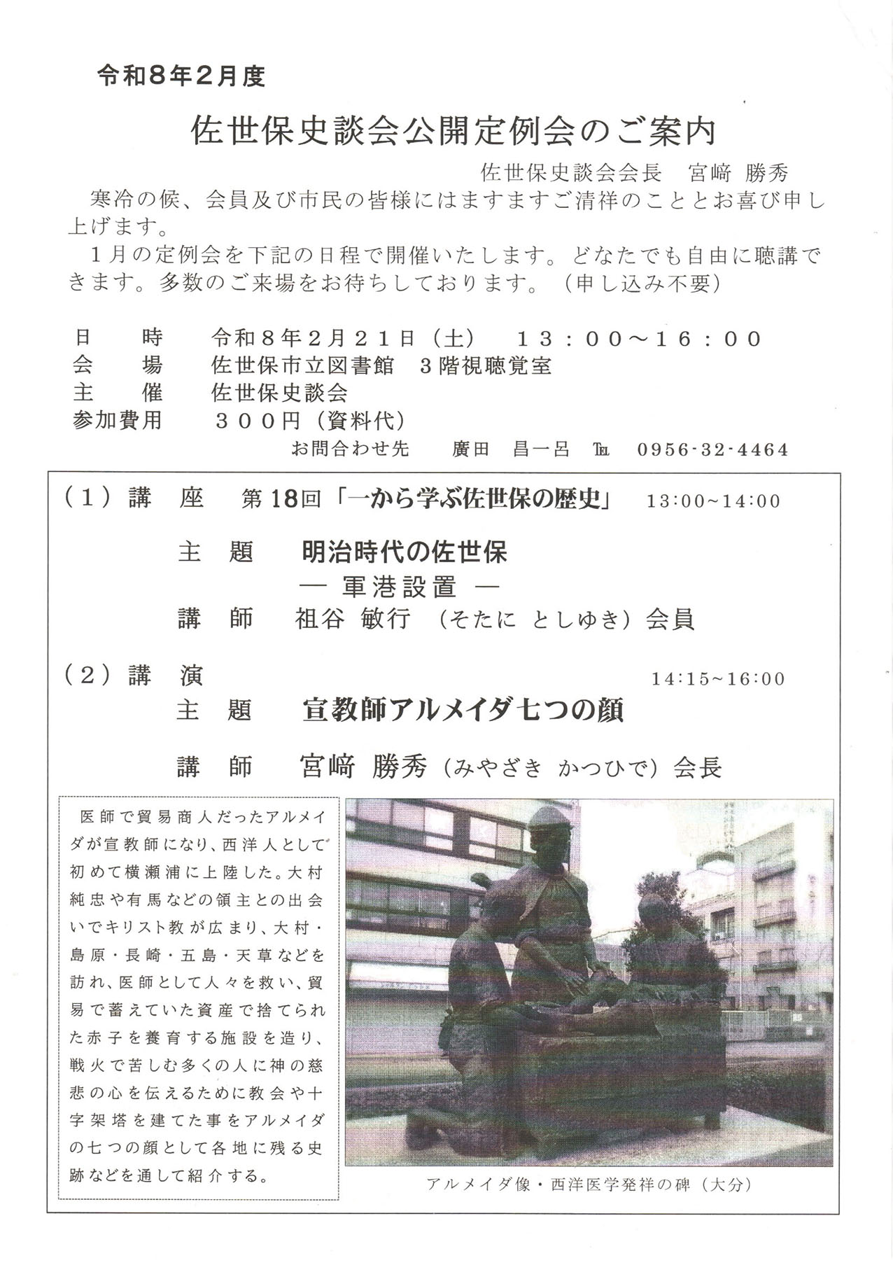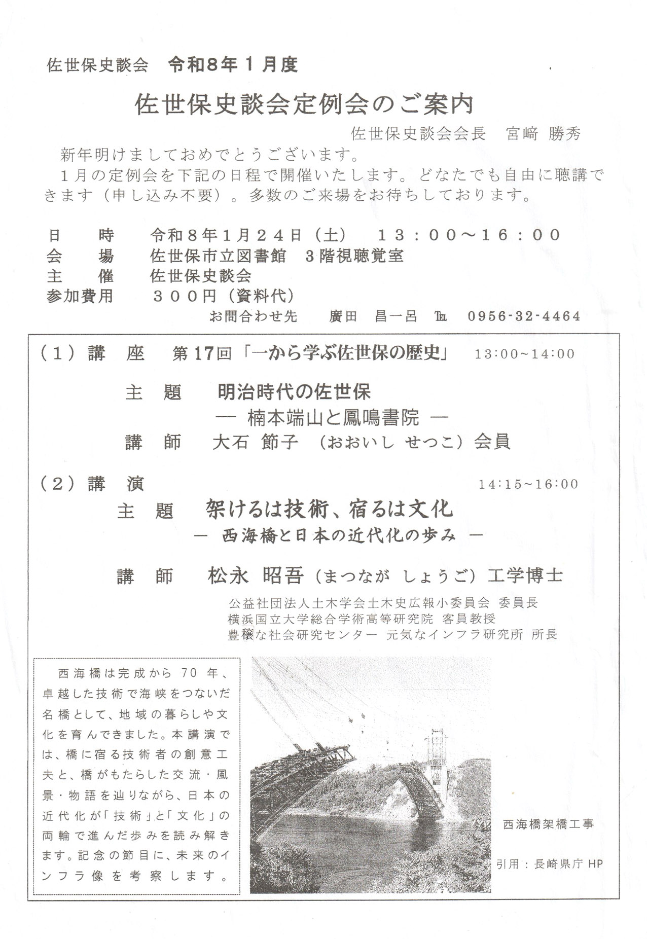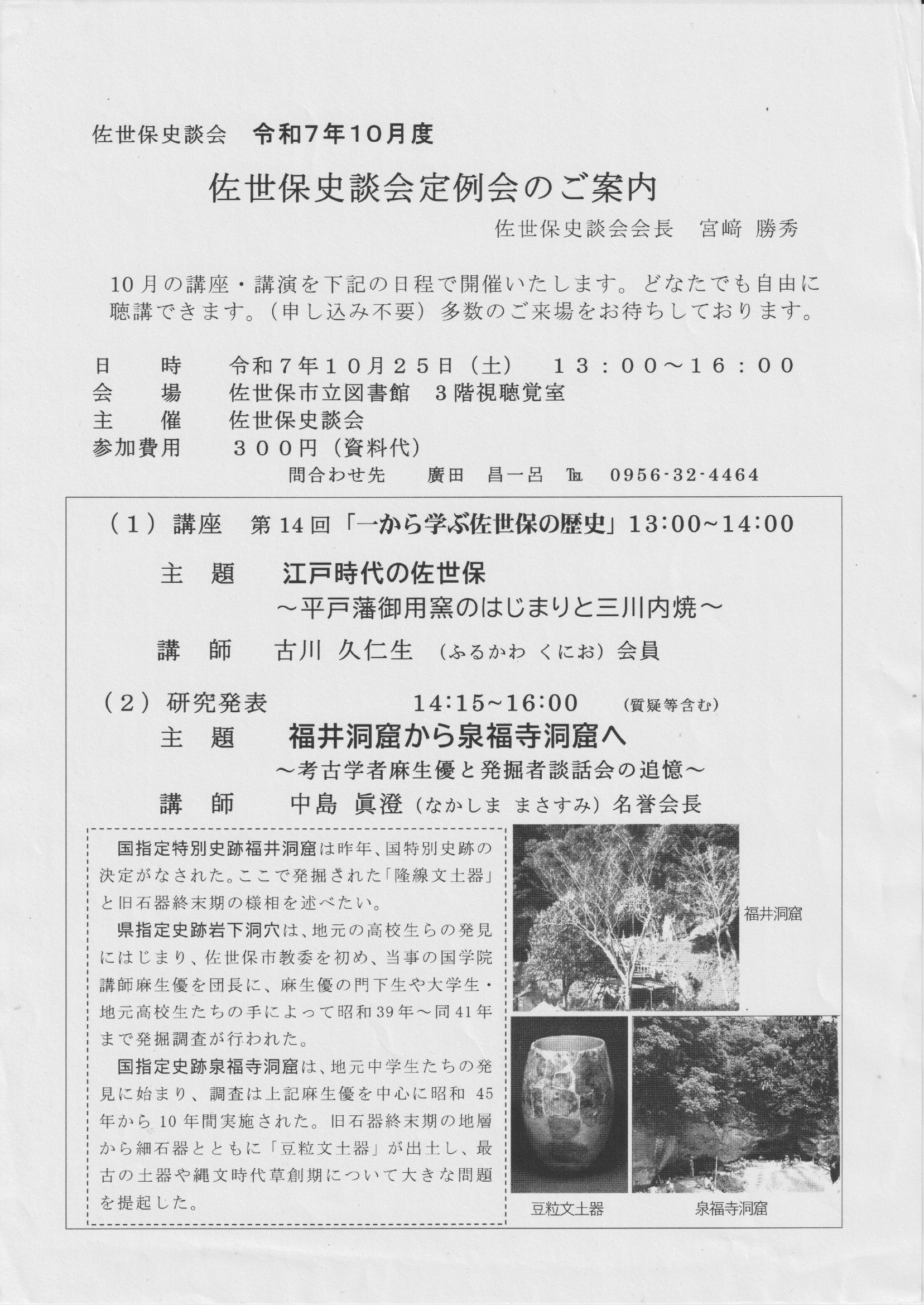 A令和7年度佐世保史談会総会(14:15〜15:30)のため定例研究発表会は中止です。